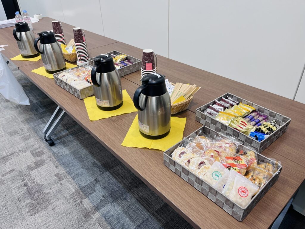 途中何度か担当者様同士でのグループワークの時間も設定。少しでもリラックスしていただき、楽しい勉強会にしたい!とのことで、コーヒーやちょっとしたお菓子をお配りさせていただきました。