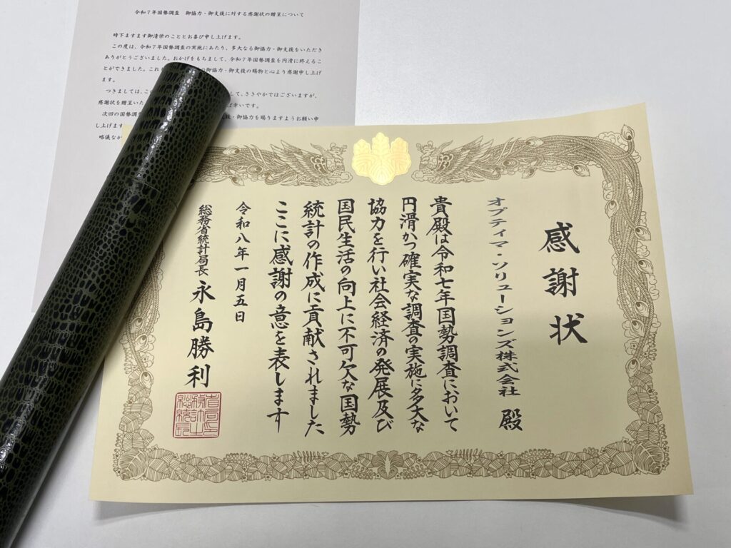 こうした地道な活動をご評価いただき、なんとこの度、総務省統計局長様より感謝状をいただきました!