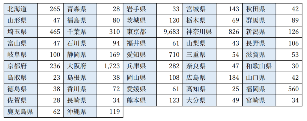 都道府県別のプライバシーマーク付与事業者数を見てみると、取得企業が多い地域としては、東京都・神奈川県・千葉県・埼玉県といった首都圏が上位を占めています。加えて、大阪府や愛知県、福岡県といった主要都市圏でも取得件数が多く、都市部を中心にPマークの導入が進んでいることがわかります。