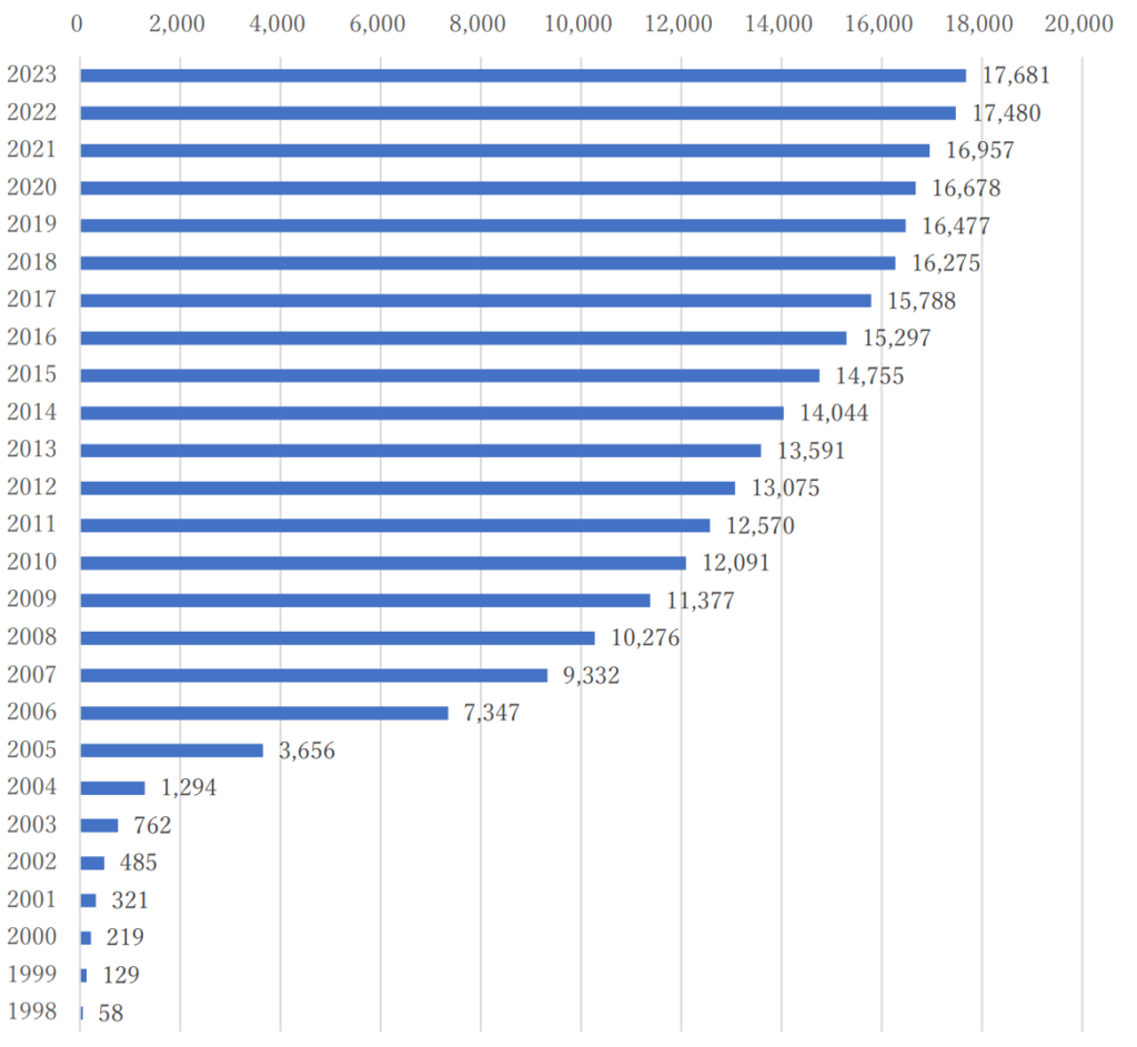 現在、Pマークを取得している企業数は17,000社を超えていて、毎年付与事業登録者数は増加しています。