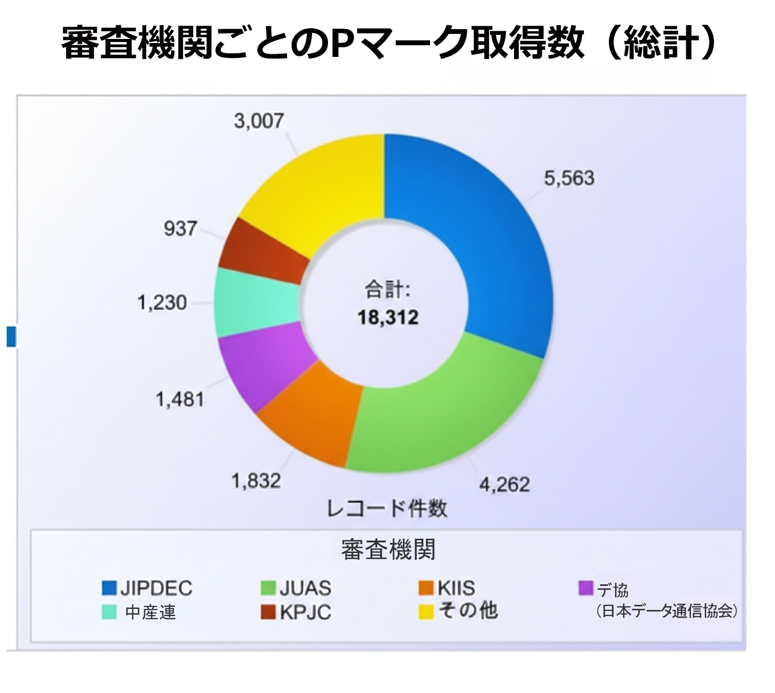 「どこの審査機関を選ぶべきなのか、分からない」という場合は、審査実績の数で判断するのもおすすめです。審査実績が多ければ、それだけ業種別の審査ノウハウが蓄積されていることになり、相談や問い合わせの対応もスムーズです。また、想定外の指摘が出にくく、初めてPマークを取得する事業者でも安心です。